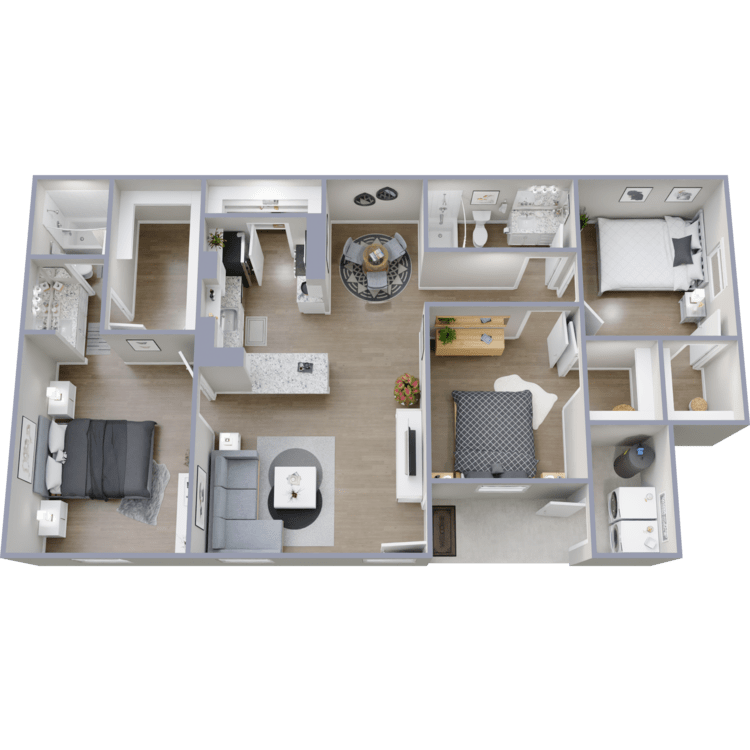 Discover our pet-friendly one, two, and three-bedroom apartments for rent in Phoenix, AZ and appreciate excellent interiors, featuring stainless steel appliances. Your space is enhanced with details like quartz countertops and a decorative tile backsplash. Spacious closets ensure a place for everything, while modern lighting and plank-style flooring provide a sense of comfort and style. Enjoy the convenience of a washer and dryer in the home.