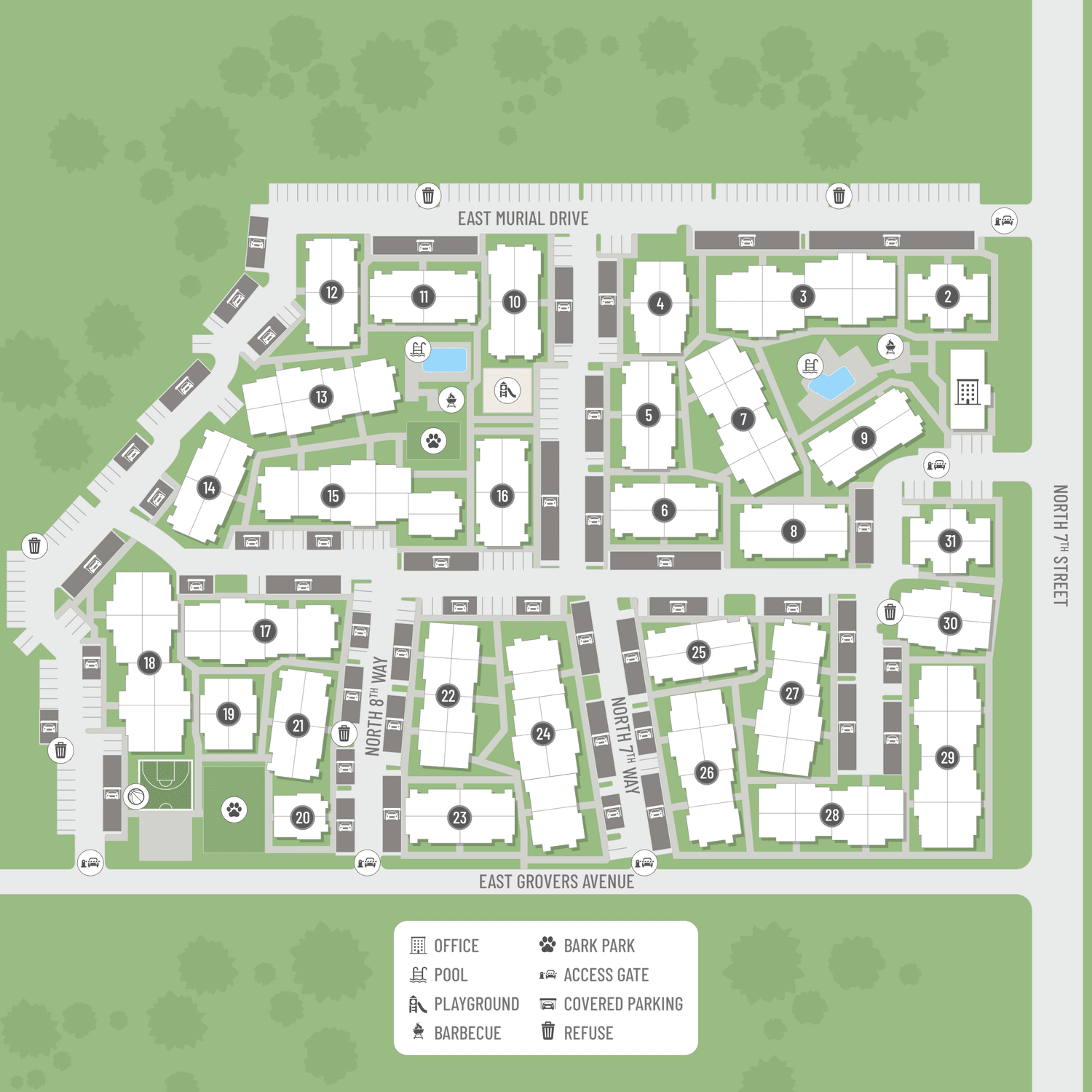 Select a floor plan or bedroom count to view those units on the overhead view on the site map. If you need assistance finding a unit in a specific location please call us at 602-466-2353 TTY: 711.